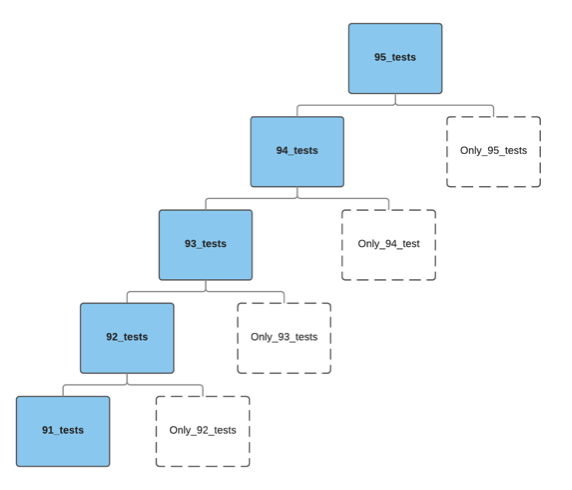 The logic for building test-schedules dynamically that will operate on one or more database server versions will be key. For example, the suite may contain test-schedules that are named: