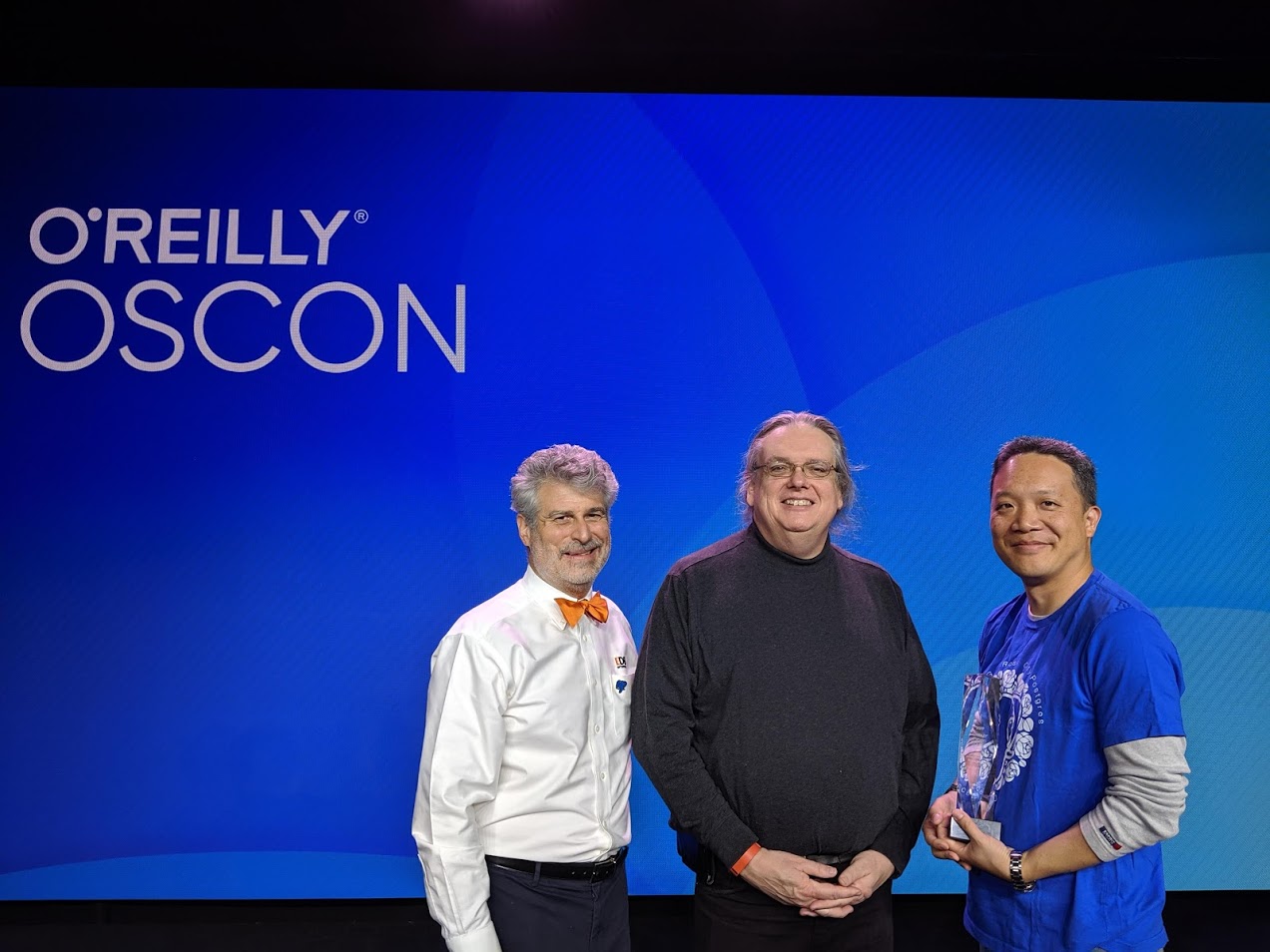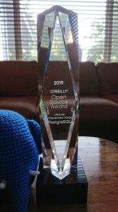 PostgreSQL was presented with the 2019 O’Reilly Open Source Award for Lifetime Achievement in Portland, Oregon, Thursday July 18th during OSCON. I had the honor of accepting that award alongside Bruce Momjian and Christophe Pettus.